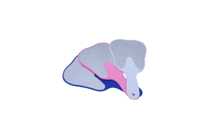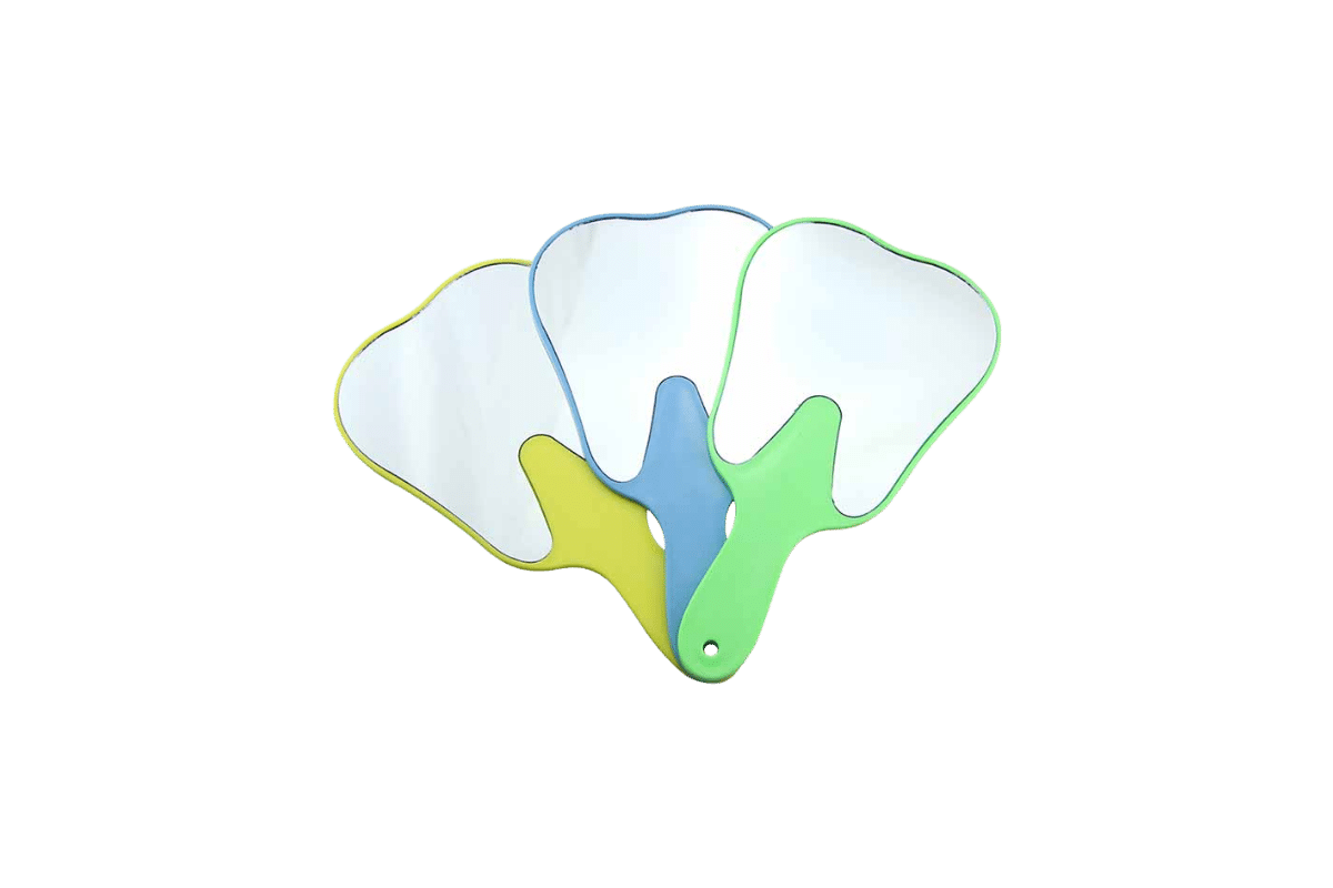 Tandformet spejl med plasthåndtag i assorterede farver. Blå, grøn, gul, pink og hvid. 1 stk.