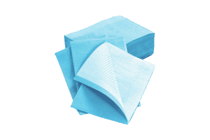 Dentoriums egne praktiske patientpapirservietter i blå eller hvide, assorterede farver.